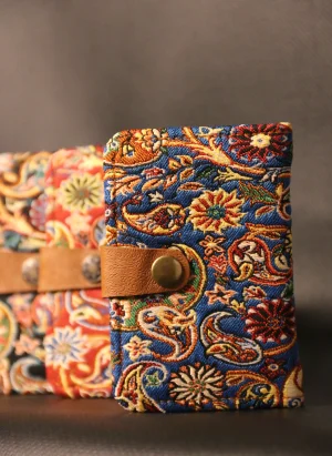 PUJİVA®ETNİK DESENLİ TELEFON BÖLMELİ ÇİFTLİ TERME CÜZDAN ÇANTA – MAVİ