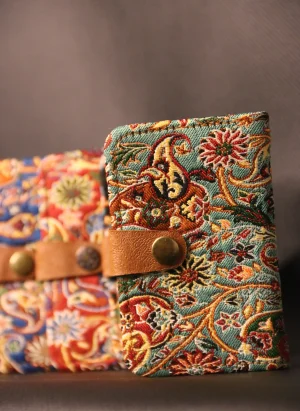 PUJİVA®ETNİK DESENLİ TELEFON BÖLMELİ ÇİFTLİ TERME CÜZDAN ÇANTA – TURKUAZ