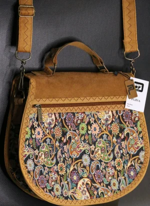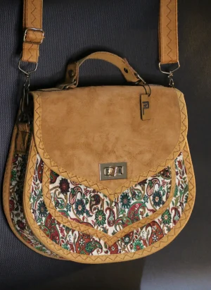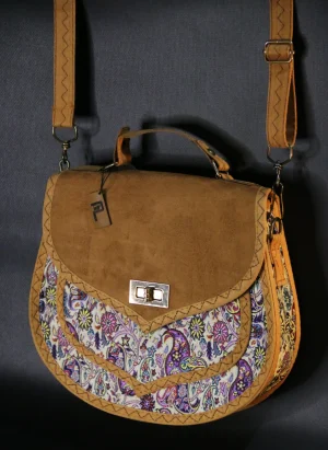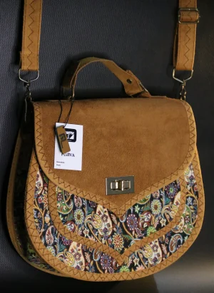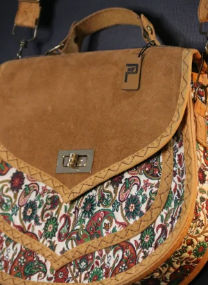PUJİVA®ETNİK DESENLİ SÜVET KAPAK TERME BÜYÜK PERİ KOL ÇANTASI – BEJ