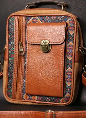 PUJİVA®ETNİK DESENLİ BOHEM DUBAİ TELEFONLUK EL VE KOL ÇANTASI – KAHVERENGİ