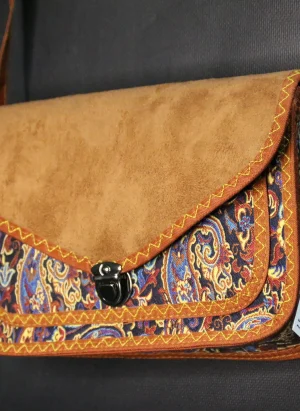 PUJİVA®ETNİK DESENLİ SÜVET KAPAK TERME BÜYÜK PERİ KOL ÇANTASI – LACİVERT