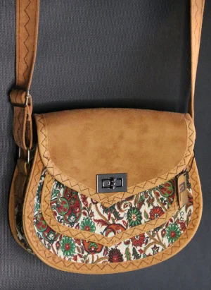 PUJİVA®ETNİK DESENLİ SÜVET KAPAK TERME KÜÇÜK PERİ KOL ÇANTASI – EKRU
