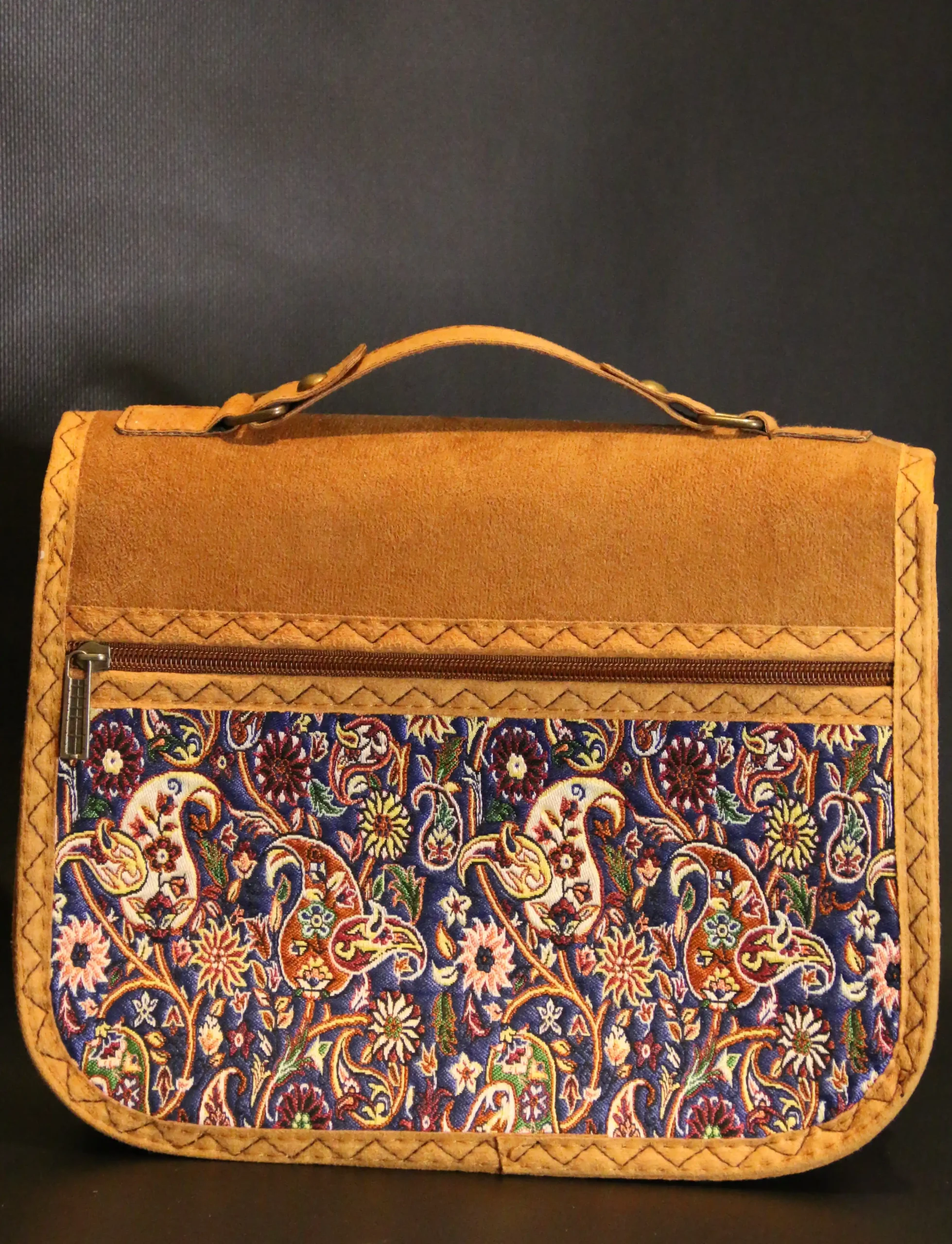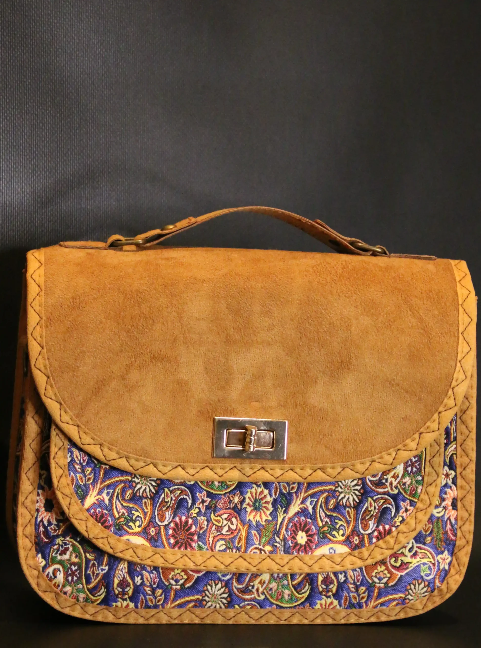 PUJİVA®ETNİK DESENLİ SÜVET KAPAK TERME PASS H KOL ÇANTASI – LACİVERT