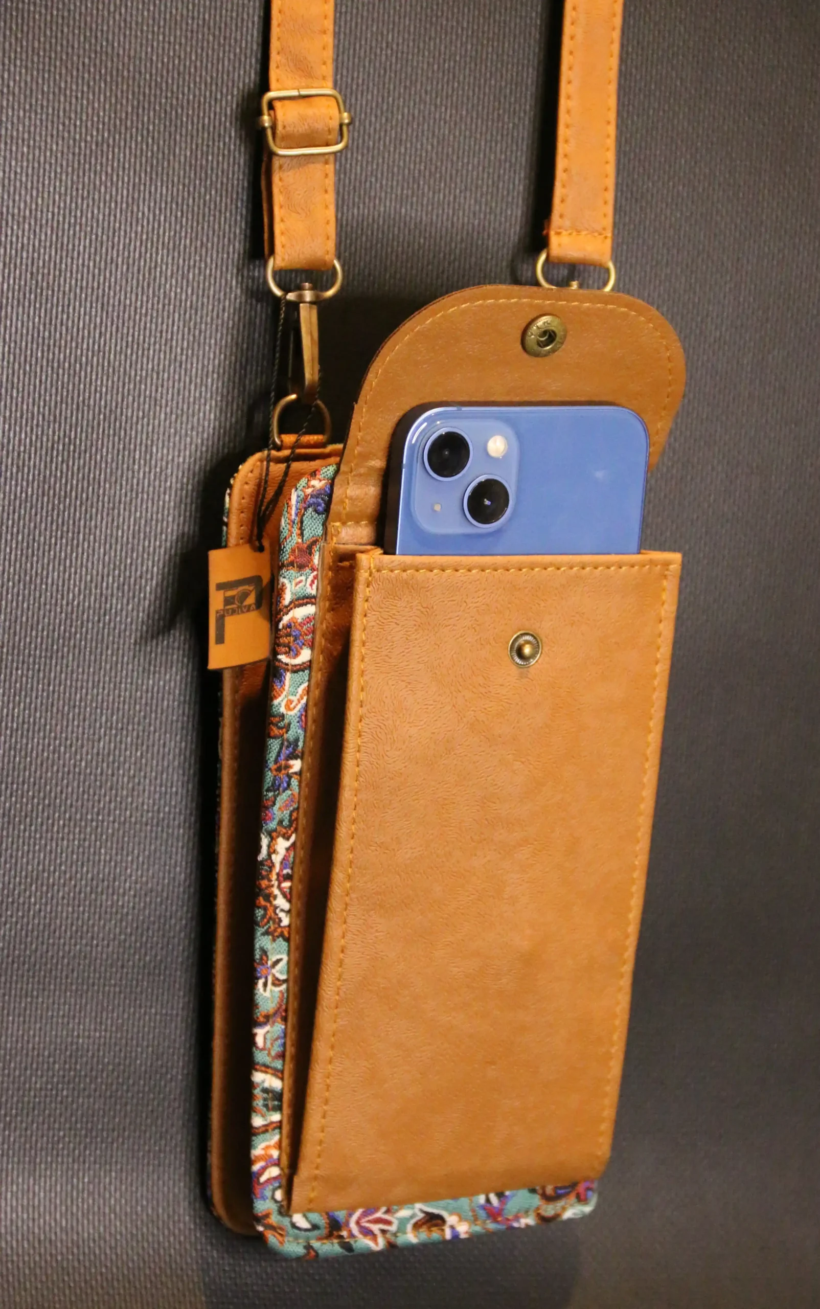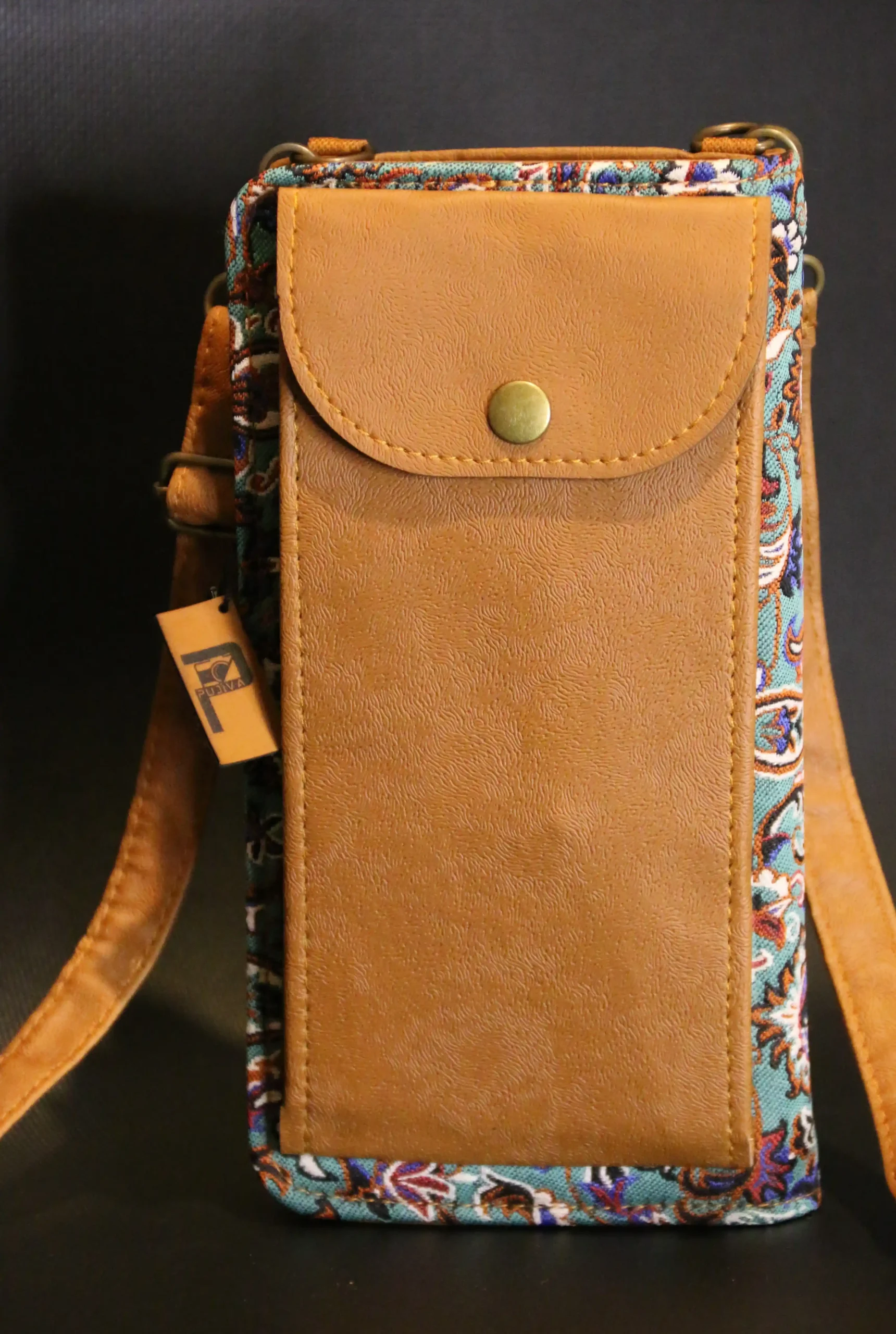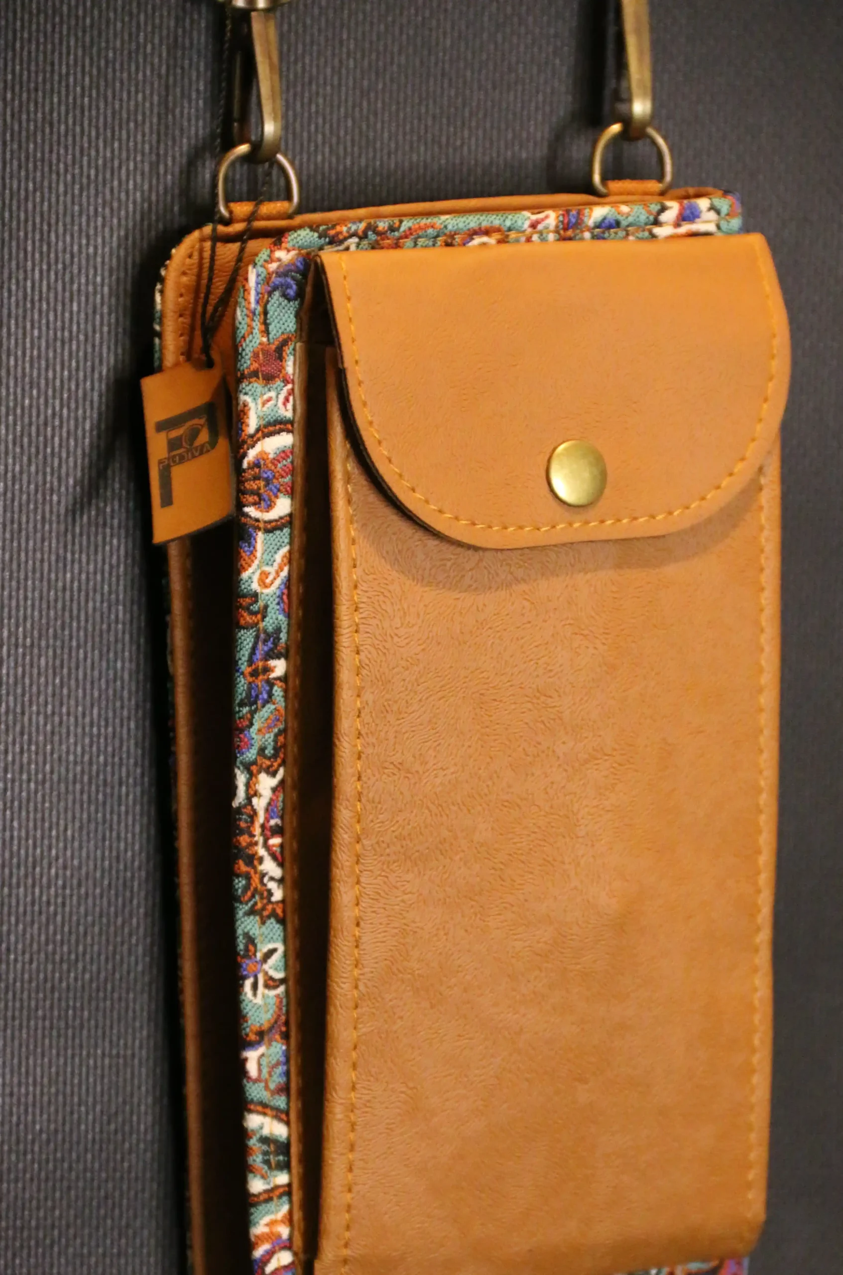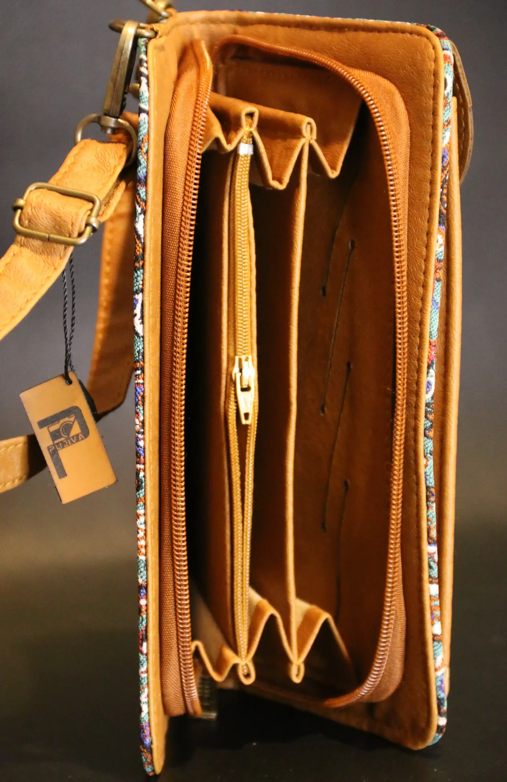 PUJİVA®ETNİK DESENLİ TELEFON BÖLMELİ TEKLİ TERME CÜZDAN ÇANTA – TURKUAZ