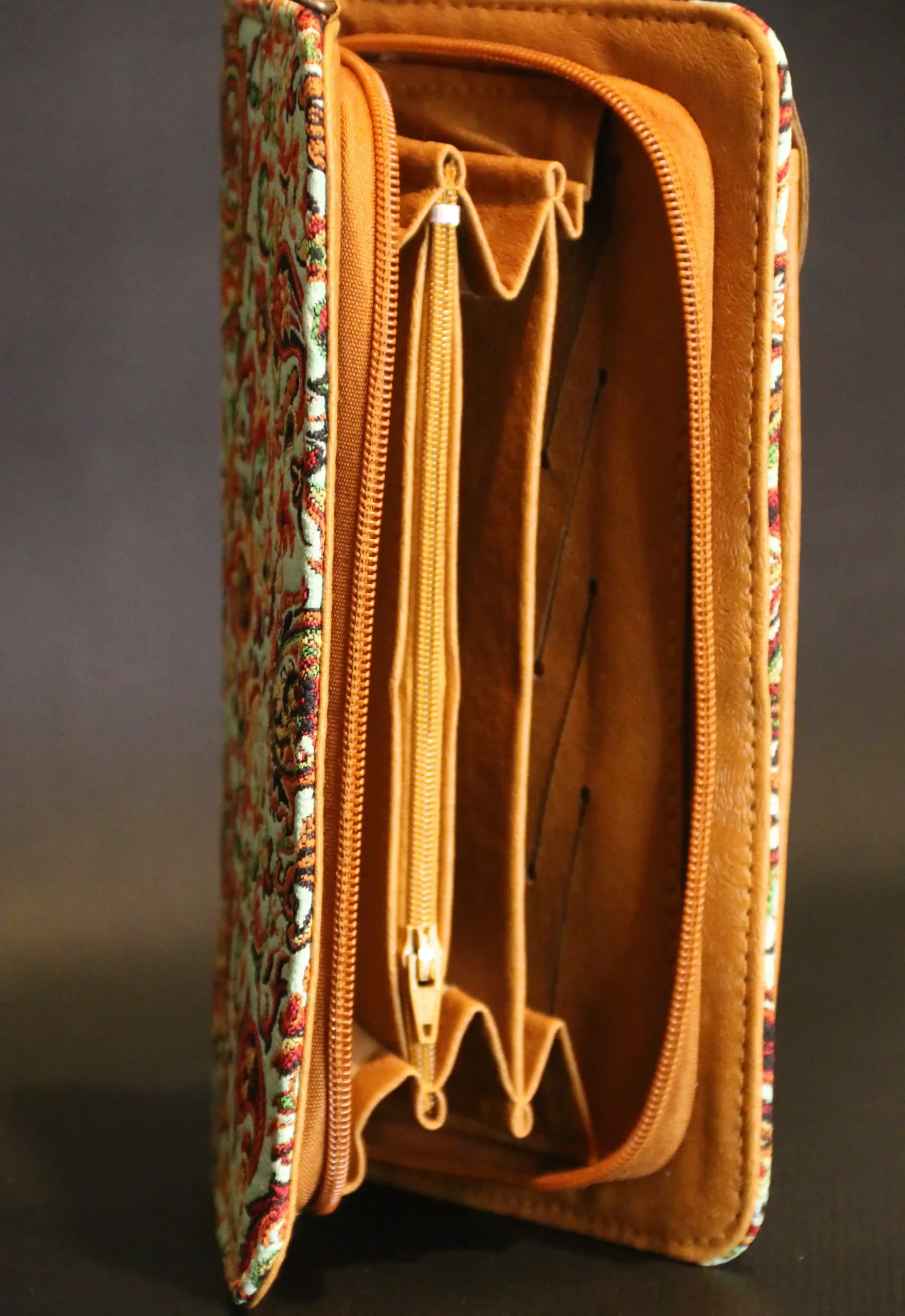 PUJİVA®ETNİK DESENLİ TELEFON BÖLMELİ TEKLİ TERME CÜZDAN ÇANTA – YOSUN YEŞİLİ