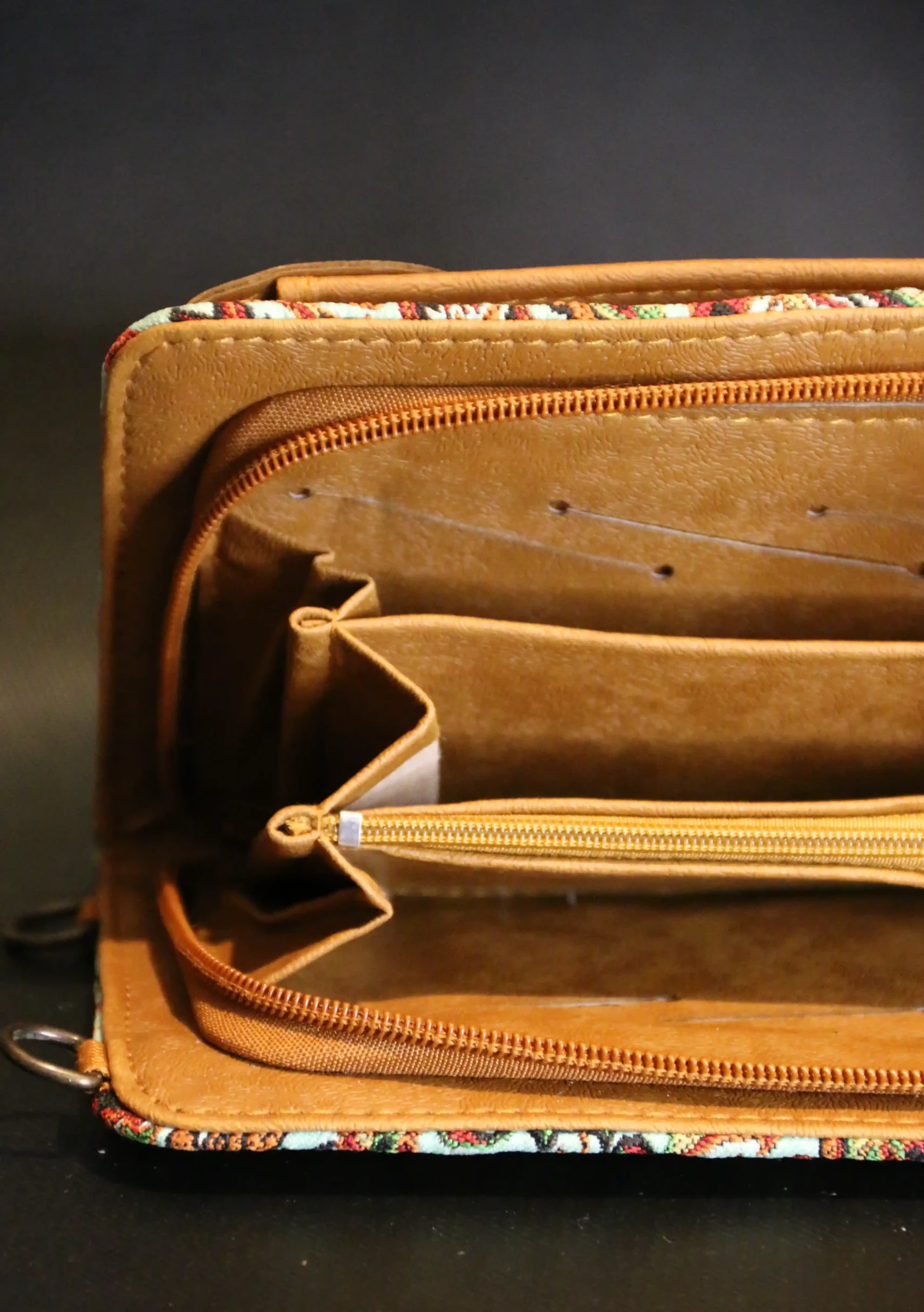 – Etnik tarzda tasarlanmış desenleriyle dikkat çeken bu cüzdan-çanta, günlük kullanıma uygun şıklığı ve rahatlığı bir arada sunar.